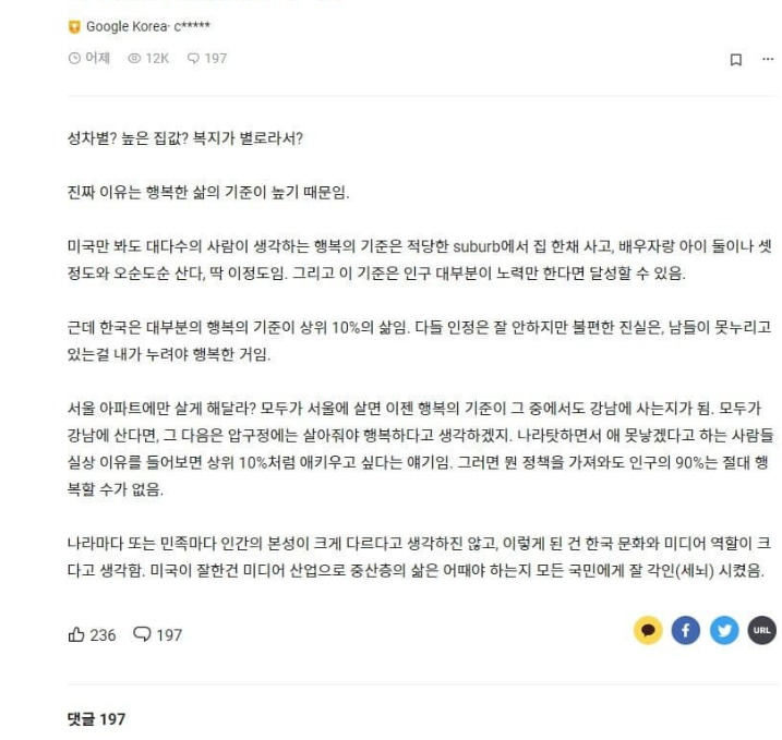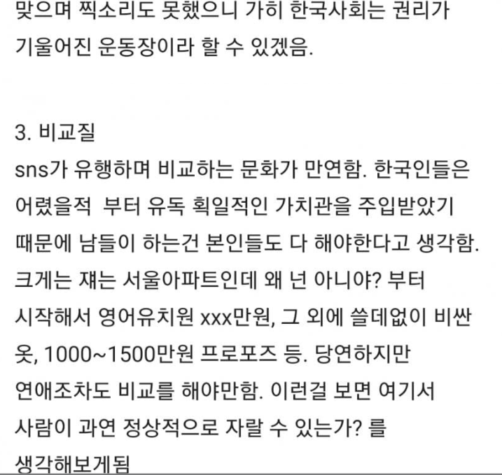 우리나라 인식과 부의 기준이 너무 높기 때문이다.