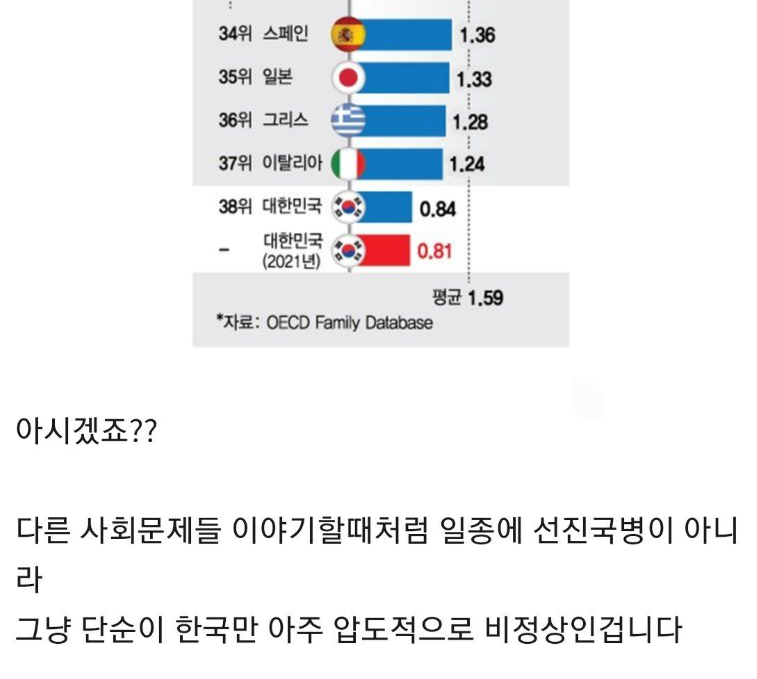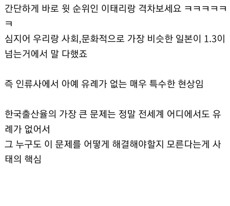 전세계적으로 유례가 없는 출산율 최하위권.....
