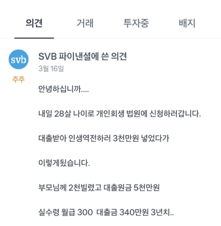 주식이란? 마음수양이 먼저다! 라고 말합니다. 파산한 SVB(실리콘밸리 은행)에 배팅했던 사람의 근황