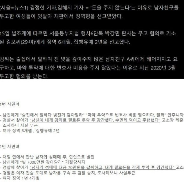 무고죄를 저지른 그녀들의 최근 근황 (사이다)