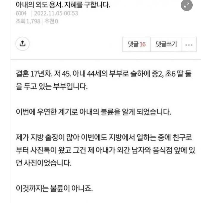 아내의 외도를 용서해주고자 하는 남편의