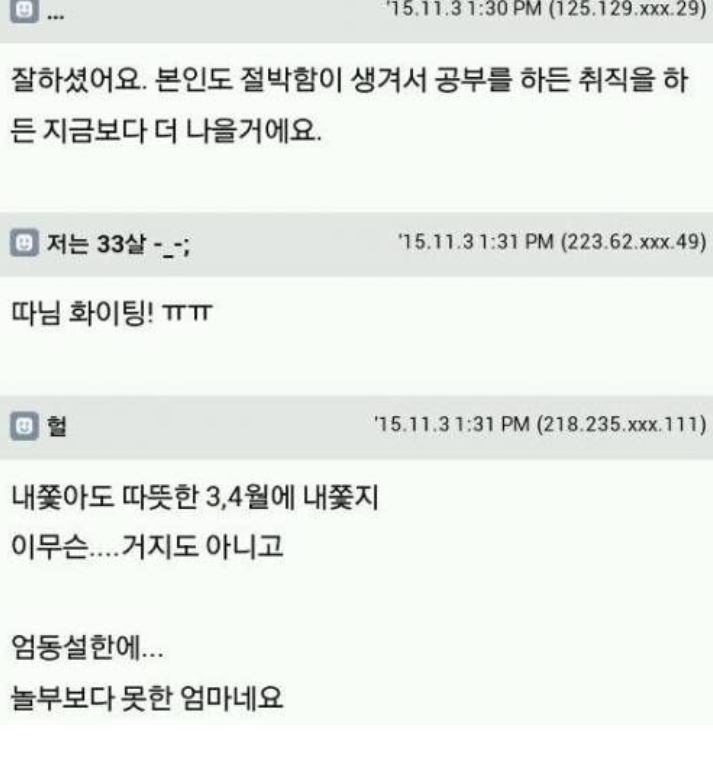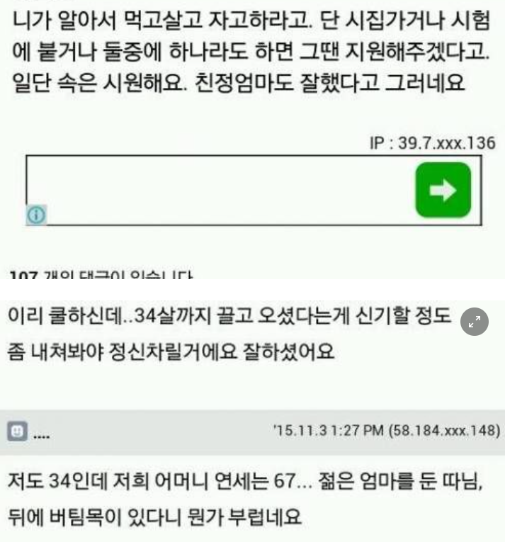 그래서 부모님의 올바른 선택... 그걸 비하하는 사람들.. 참